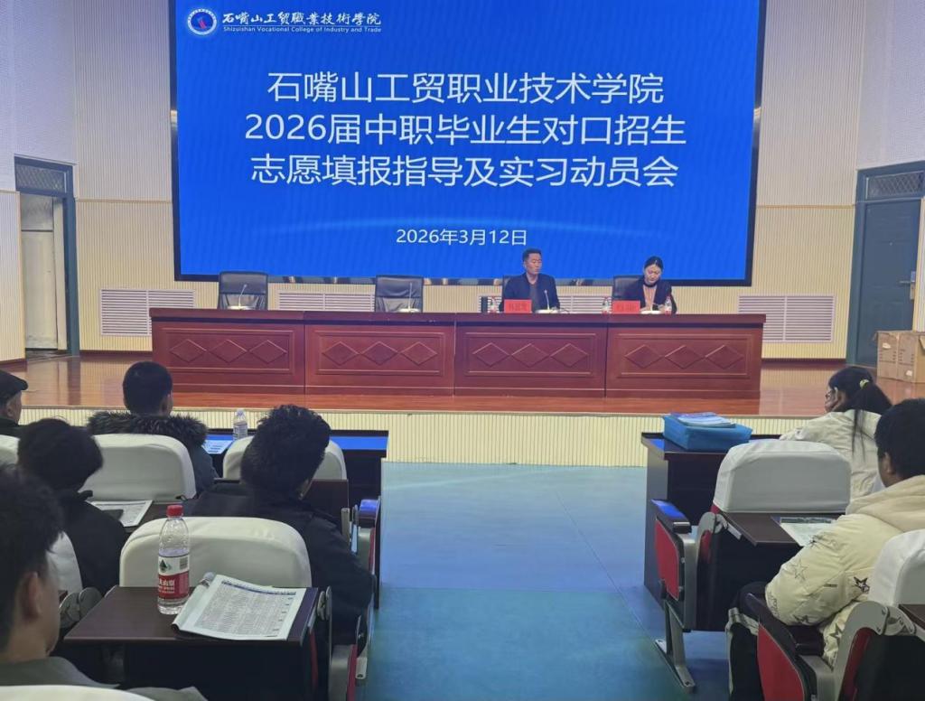 為切實(shí)做好中職三年制學(xué)生對(duì)口招生考試志愿填報(bào)服務(wù),安排學(xué)生順利安全開(kāi)展企業(yè)實(shí)踐,助力學(xué)生平穩(wěn)銜接升學(xué)與實(shí)踐,3月12日,石嘴山工貿(mào)職業(yè)技術(shù)學(xué)院召開(kāi)對(duì)口招生志愿填報(bào)指導(dǎo)暨企業(yè)實(shí)踐動(dòng)員大會(huì),學(xué)院黨委委員、副院長(zhǎng)韓恩寬主持會(huì)議,中職畢業(yè)生及部分家長(zhǎng)代表參加會(huì)議。