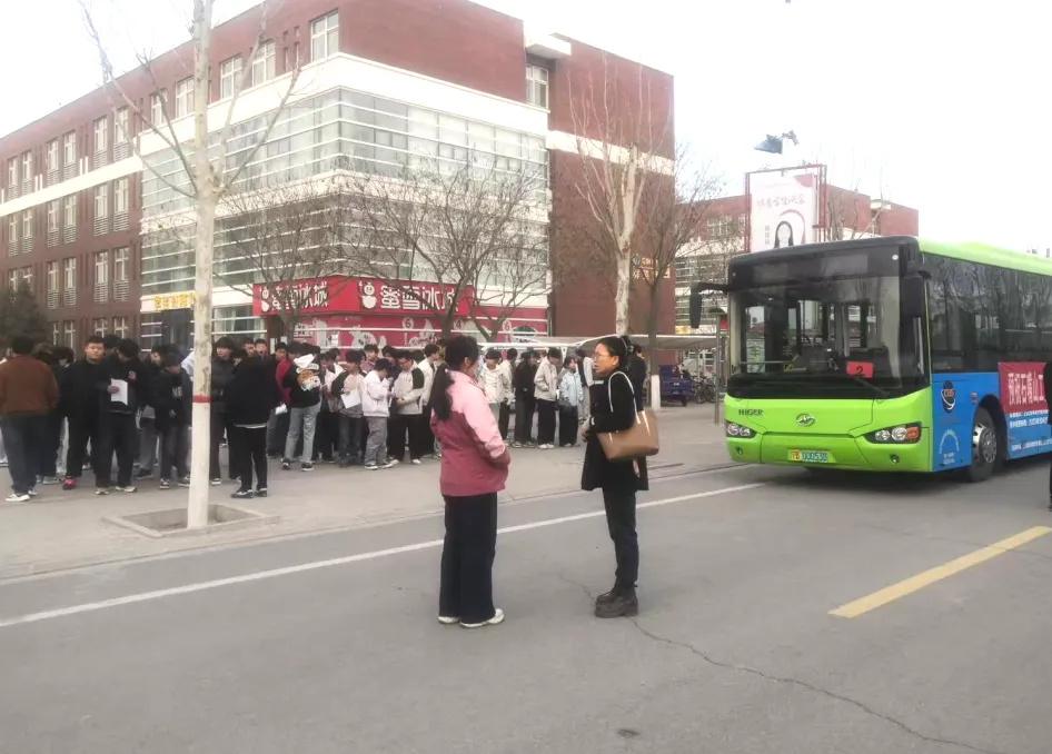 測試當日,學院安全保衛(wèi)部工作人員、對口招生考試班級的班主任及值班教師各司其職,組織考生集合、清點人數(shù),并引導(dǎo)學生有序登車。學院黨委委員、副院長侯蓉及教務(wù)處工作人員、各院系負責人組成考點工作組,提前抵達考點現(xiàn)場,進行周密部署,有序引導(dǎo)考生下車、排隊候場。各院系負責人與班主任們堅守考點一線,全程守護,確保每位考生順利進入考場、安心應(yīng)考,并在考試結(jié)束后組織考生乘車統(tǒng)一返校。