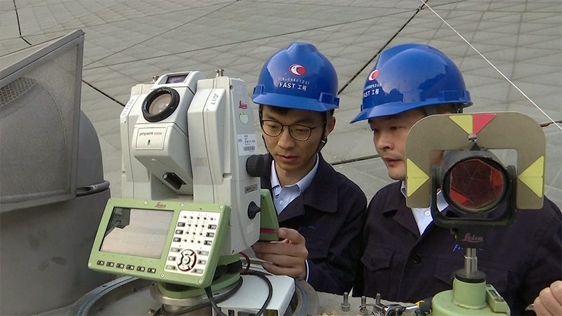 “中國天眼”團隊的技術(shù)人員正在操作設(shè)備,開展科研工作。