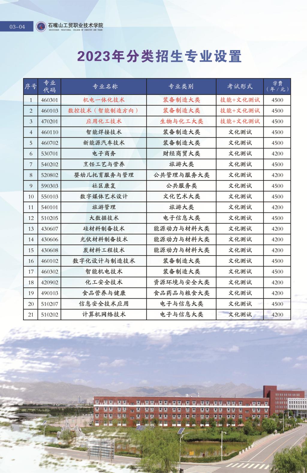 2023年石嘴山工貿(mào)職業(yè)技術(shù)學(xué)院分類招生計(jì)劃