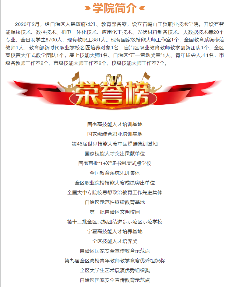 © 石嘴山工貿(mào)職業(yè)技術學院 備案編號: