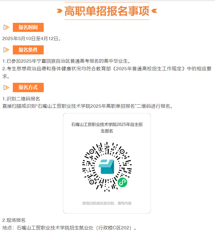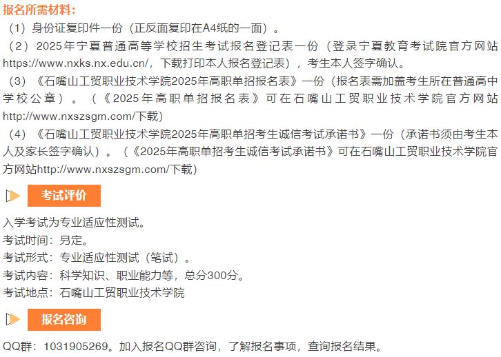石嘴山工貿(mào)職業(yè)技術學院2025年單獨考試招生簡章